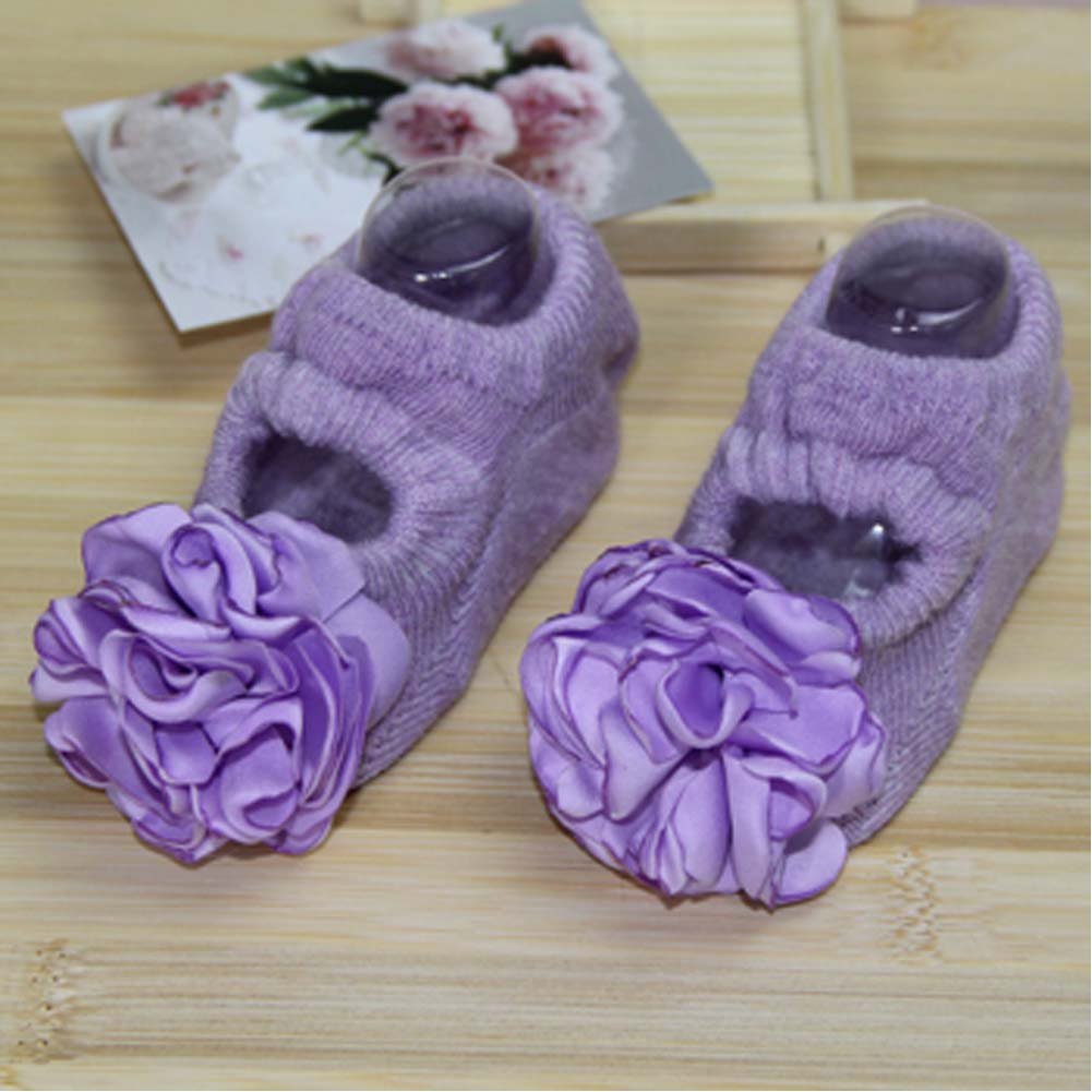 Home > 2 Pairs Baby Socks Flower Anti-slip Socks for Baby Girls, Purple