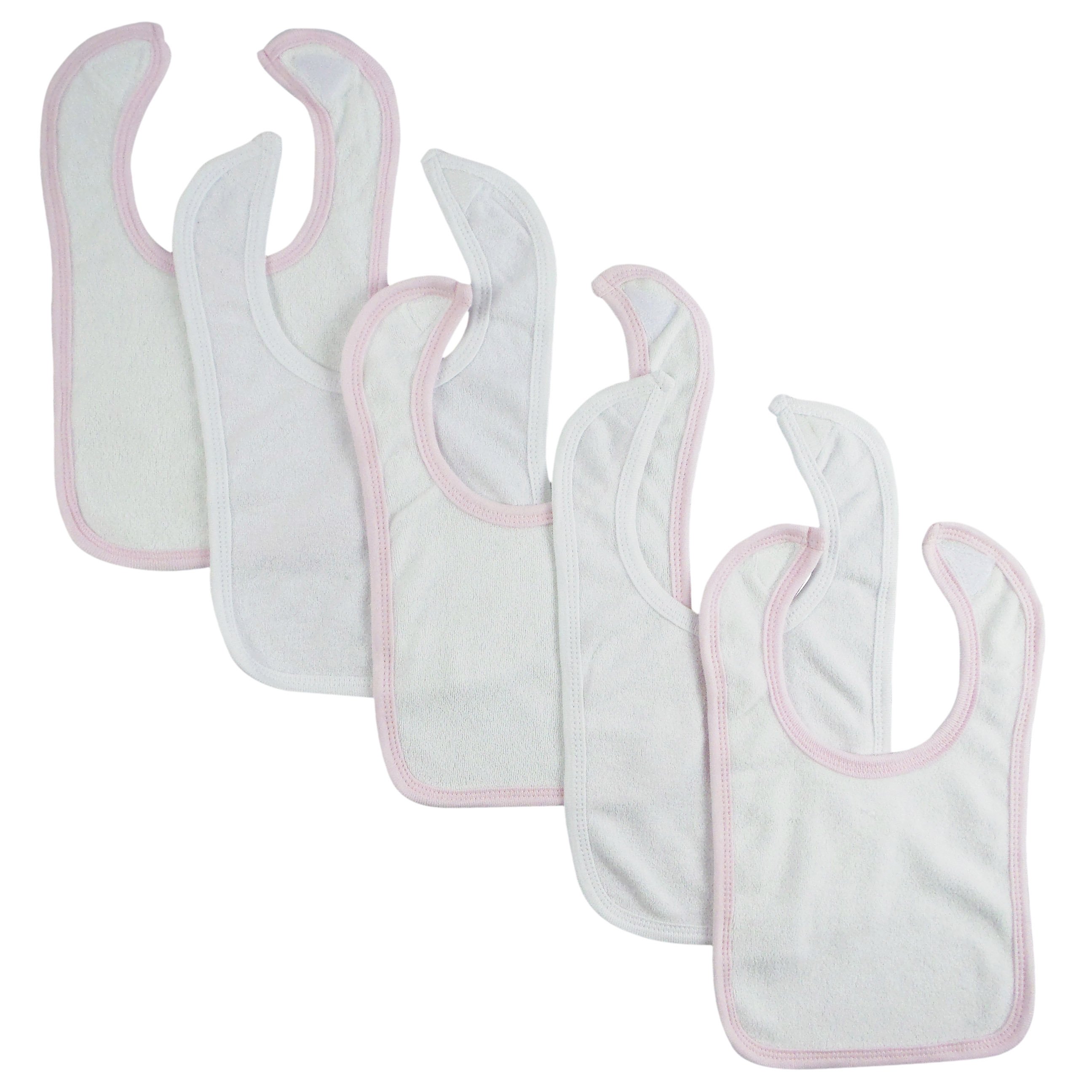 Bambini White Bib With Pink Trim and White Trim (Pack of 5)